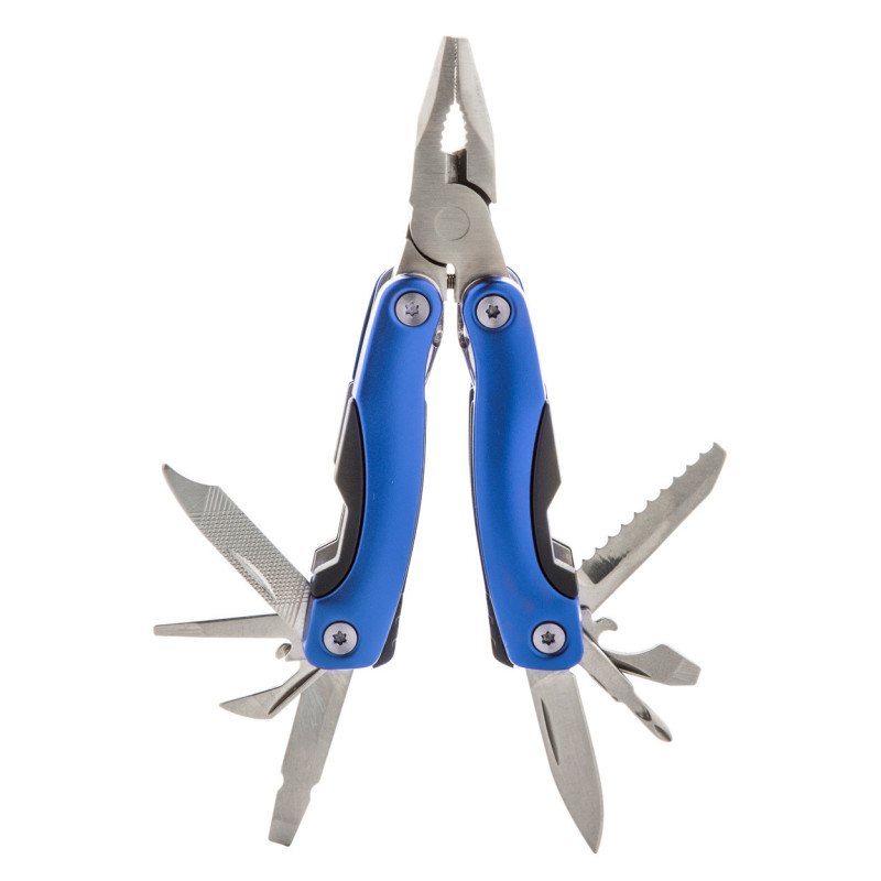 Rozsdamentes acél multiszerszám, 12 funkcióval, poliészter tokkal.