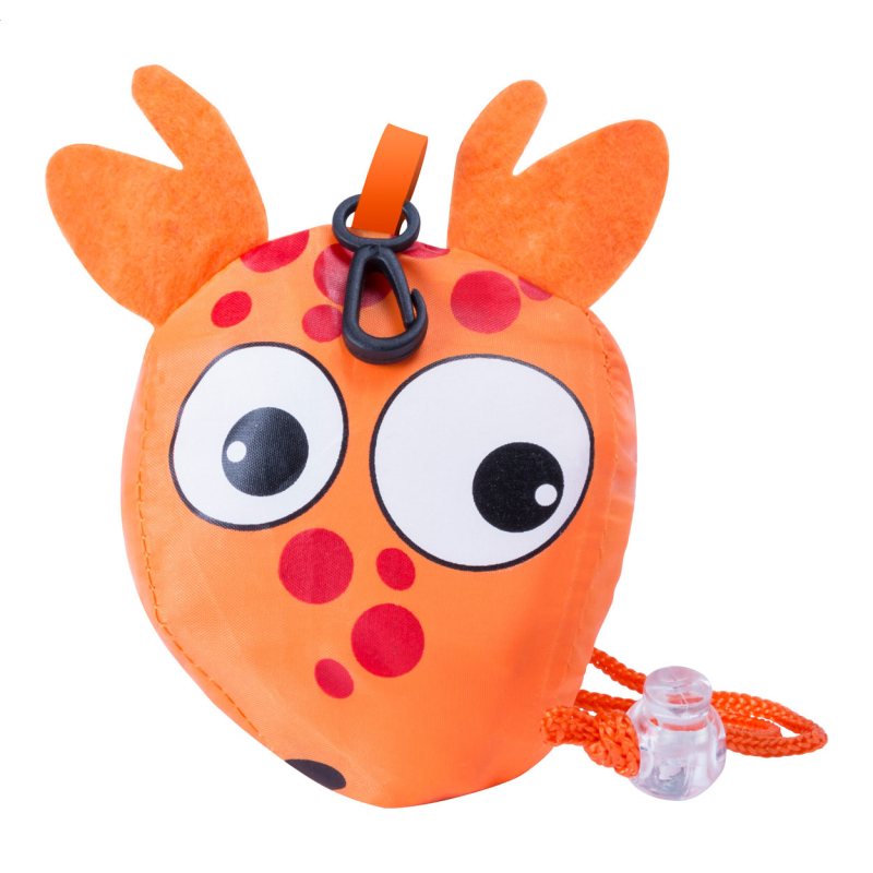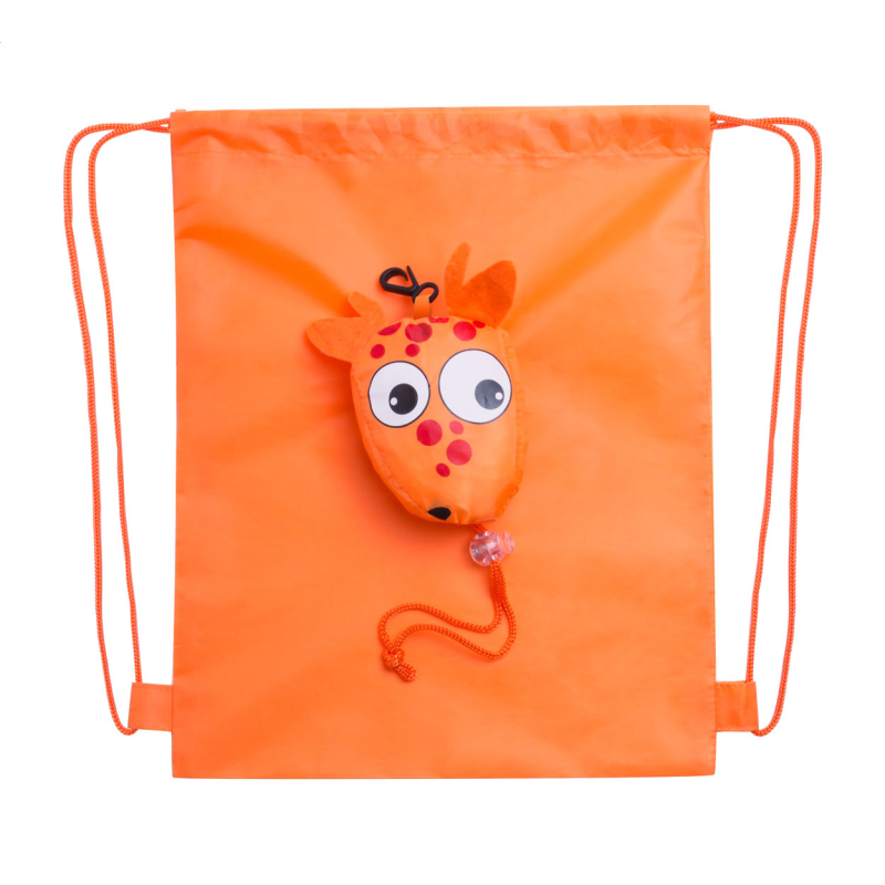 Összehajtogatható gyerek hátizsák, figurás tokban, műanyag karabinerrel. Anyaga: 190T poliészter.