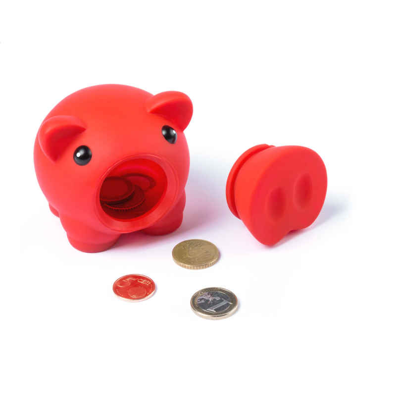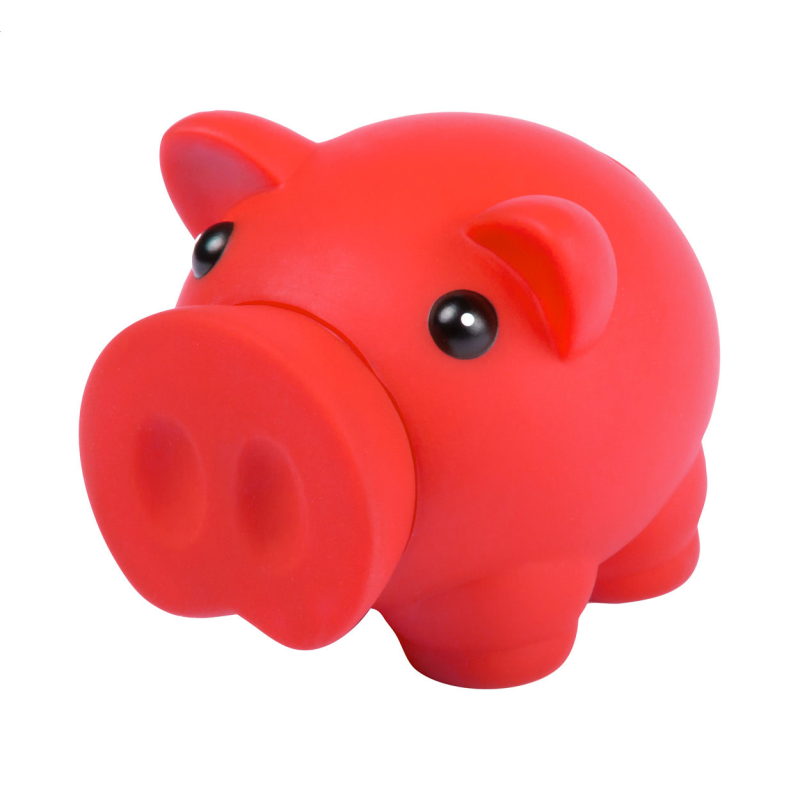Műanyag malacpersely, melyből az aprópénzt az orr elforgatásával lehet kivenni.