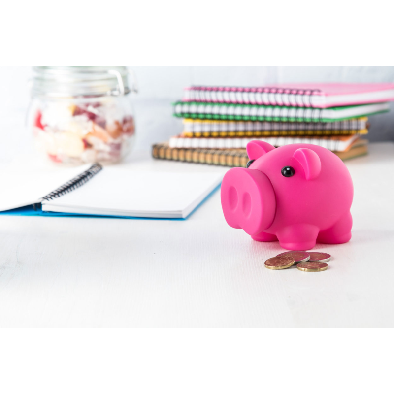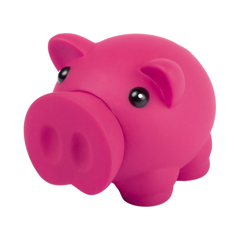 Műanyag malacpersely, melyből az aprópénzt az orr elforgatásával lehet kivenni.