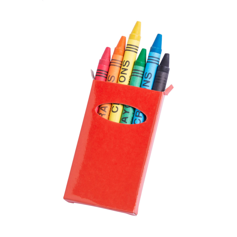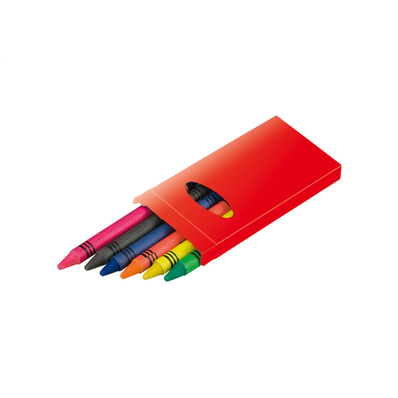 Színes zsírkréták (6 db) átlátszó, toll alakú dobozban.