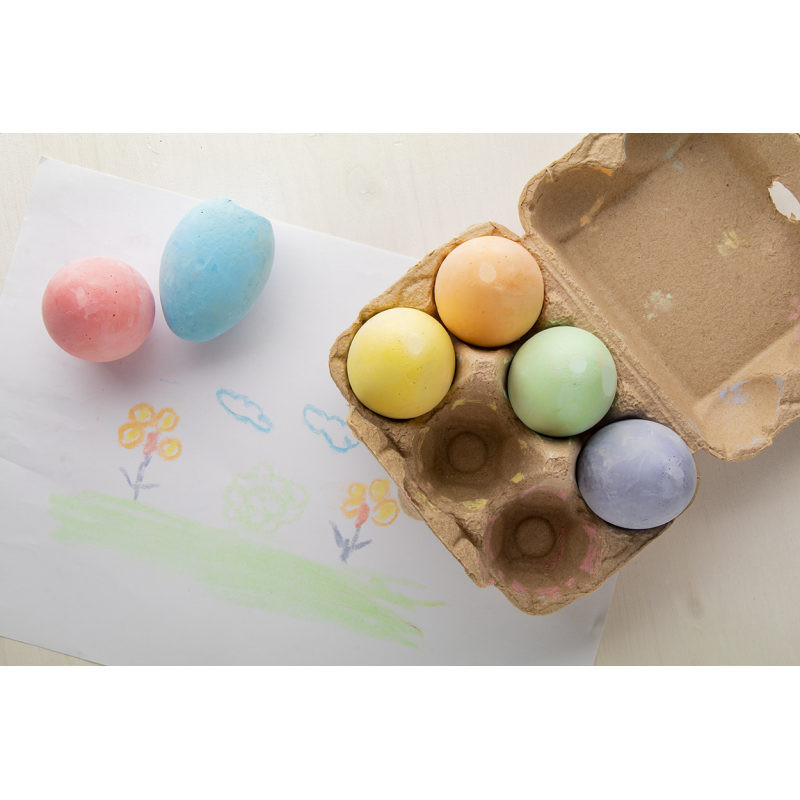 6 darab színes tojás formájú kréta, karton dobozban.