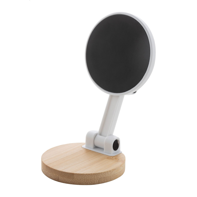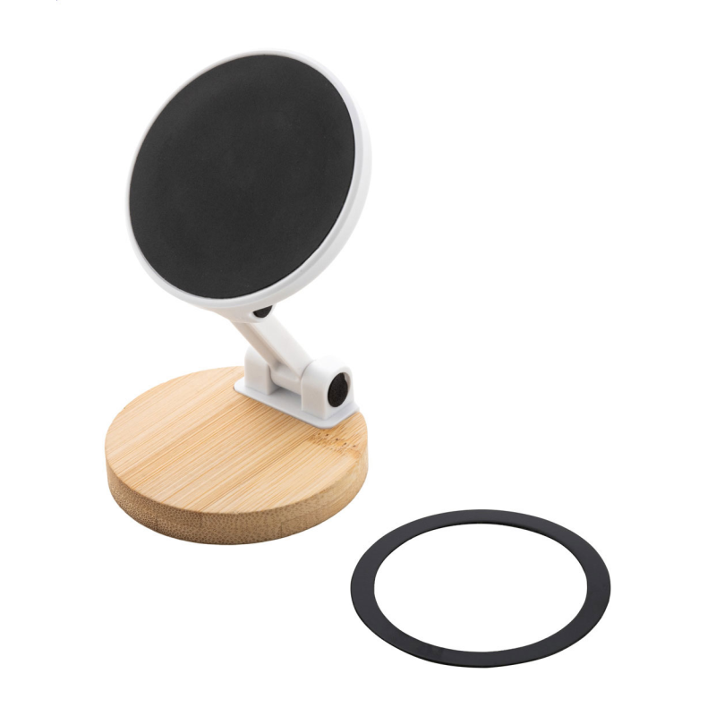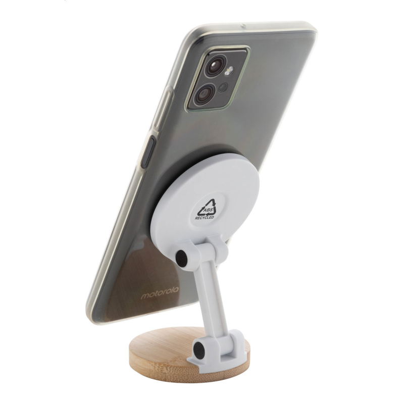 Mágneses asztali mobiltelefon tartó bambuszból és újrahasznosított ABS műanyagból.