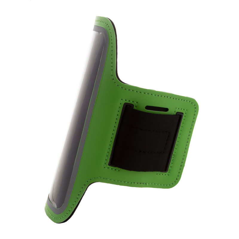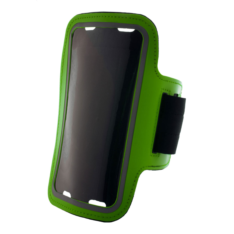 Felkarra rögzíthető műbőr mobiltelefon-tartó, érintőképernyős ablakkal és fényvisszaverő részekkel. Max. 6 colos kijelző méretű telefonokhoz.