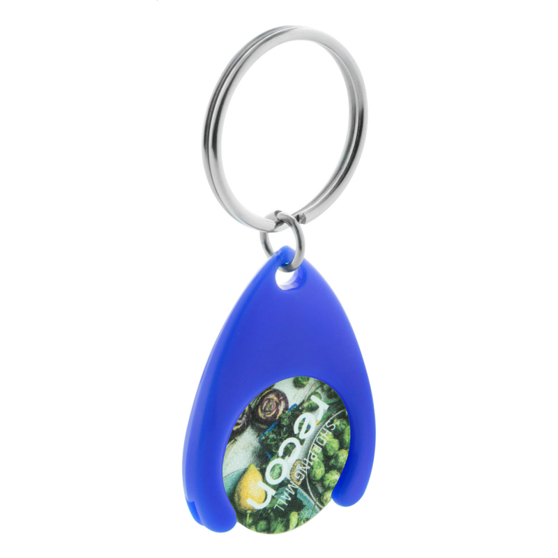 Egyedi műanyag kulcstartó bevásárló érmével.