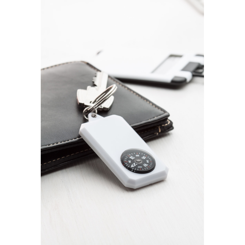 Műanyag kulcstartó iránytűvel és fém kulcskarikával