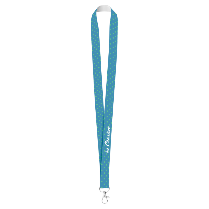 Egyedi grafikával ellátott poliészter nyakpánt levehető fém karabinerrel, mobiltartóval és biztonsági csattal. Mindkét oldalán szublimációs technológiával emblémázva.
