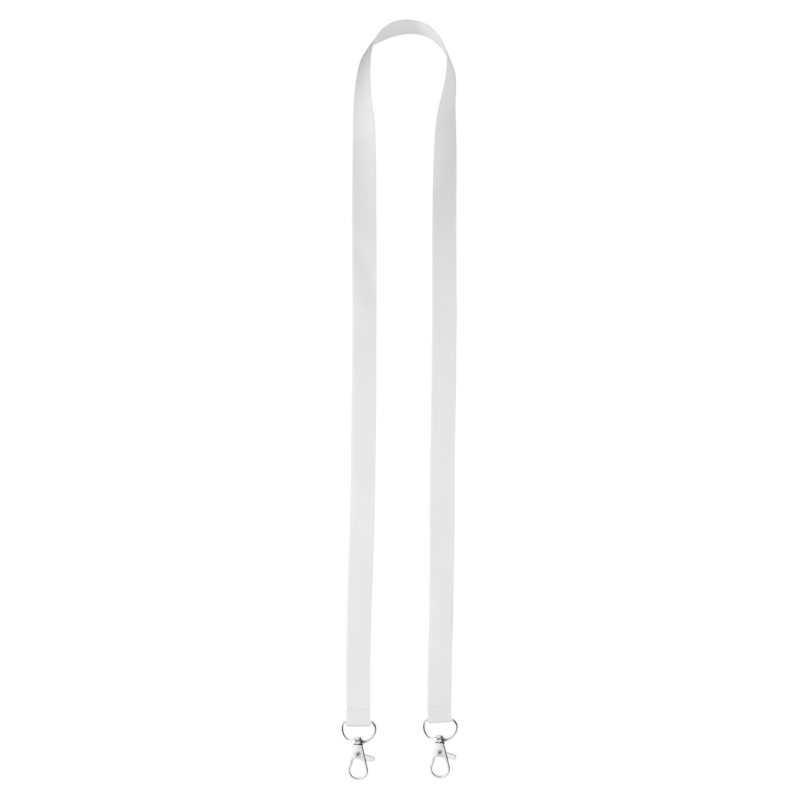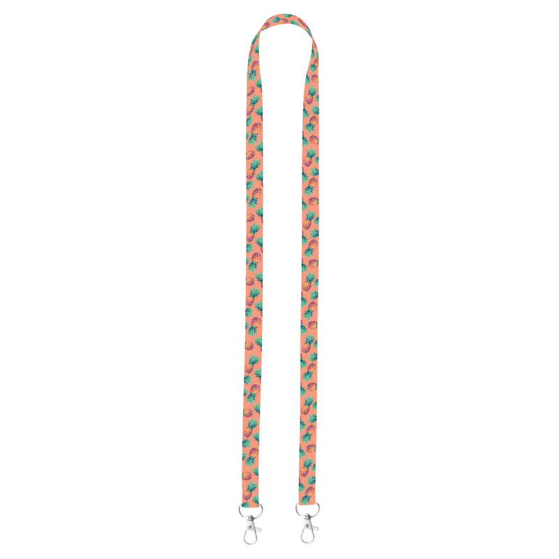 Egyedi mintájú, RPET poliészter nyakpánt 2 fém karabinerrel. Mindkét oldalán szublimációs technológiával emblémázva.
