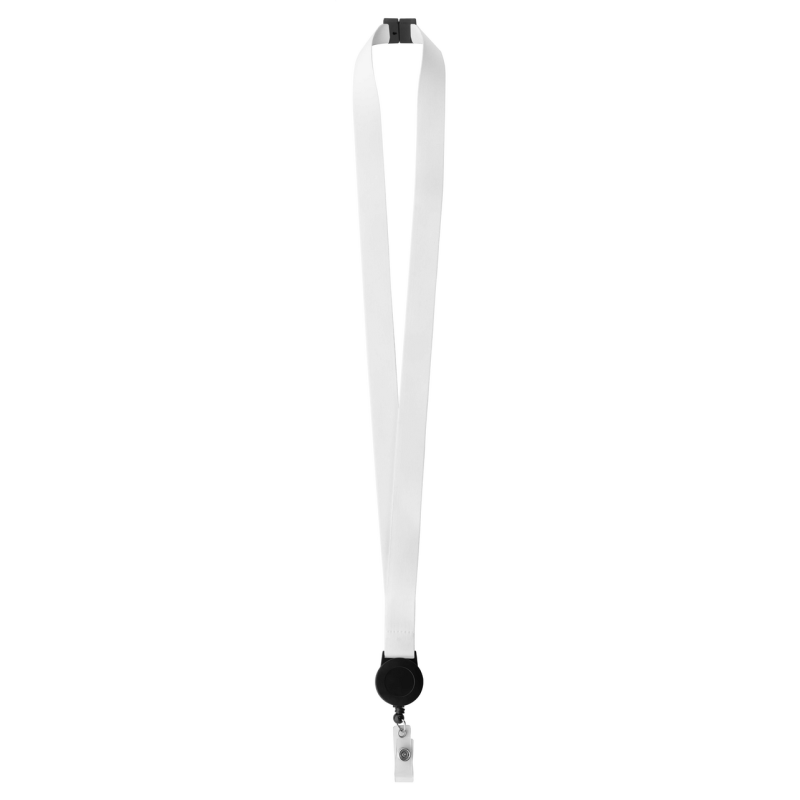 Egyedi gyártású poliészter nyakpánt lecsatolható fém karabinerrel és biztonsági csattal. Beépített 8 GB-os USB 2.0. memóriával a műanyag csatban.