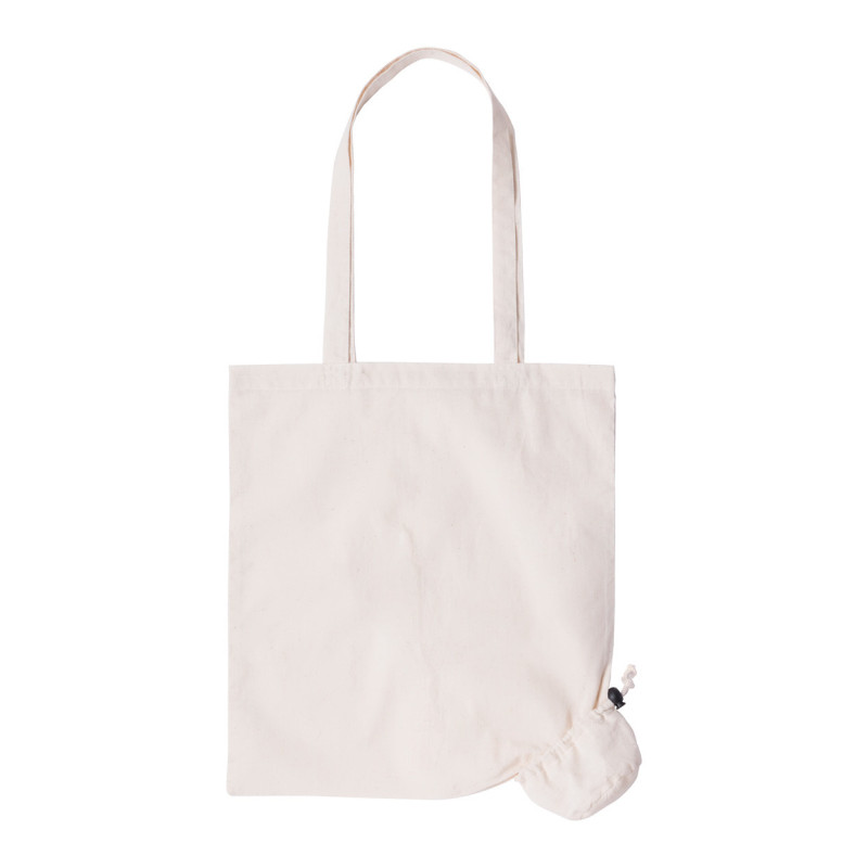 Összehajtható bevásárlótáska hosszú hord füllel, 100% pamut, 105 g/m².