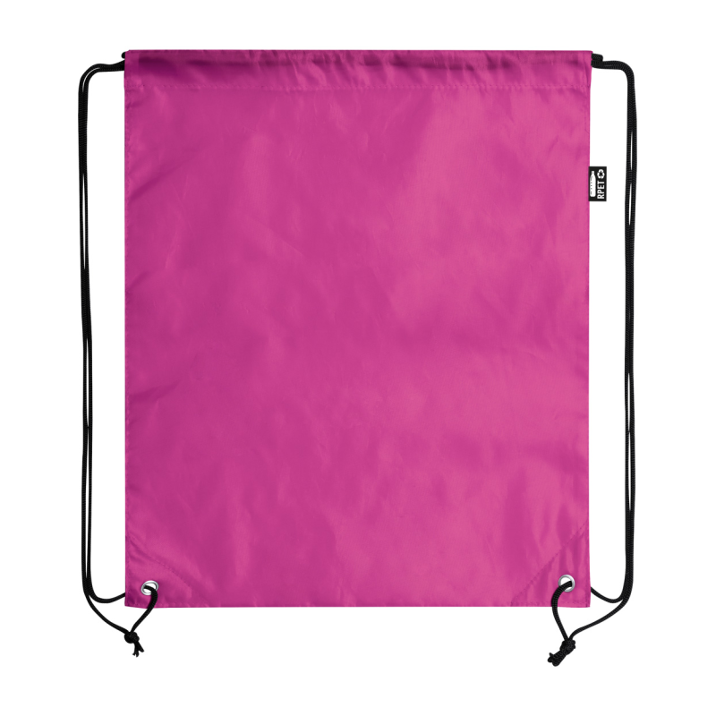 Prémium minőségű RPET zsinóros hátizsák, cipzáras cipőrekesszel, hálós oldalsó betétekkel és széles pántokkal. Műbór bevonatú 600D RPET poliészter, megkülönböztető RPET címkével.