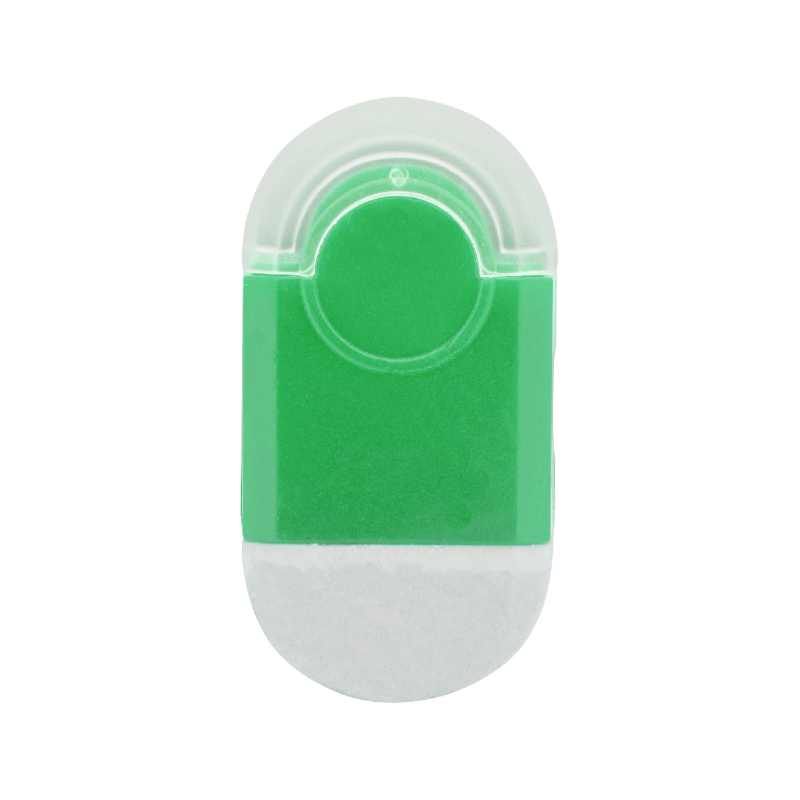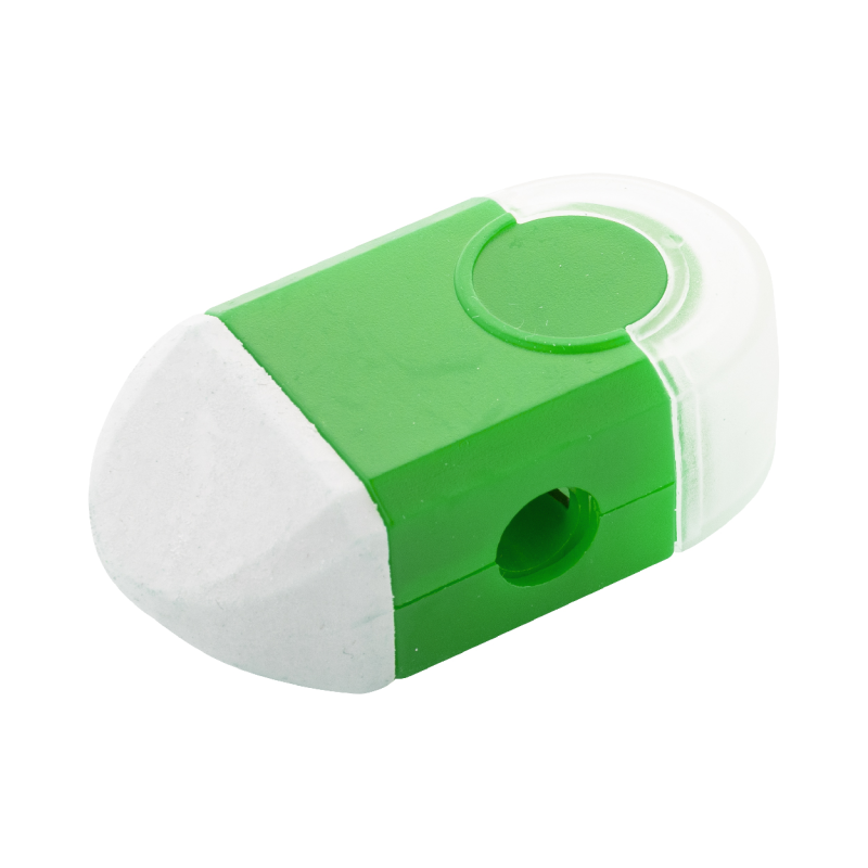 Kiradírozható zselés műanyag toll, amelynek radírja a kupak külső oldalán található.