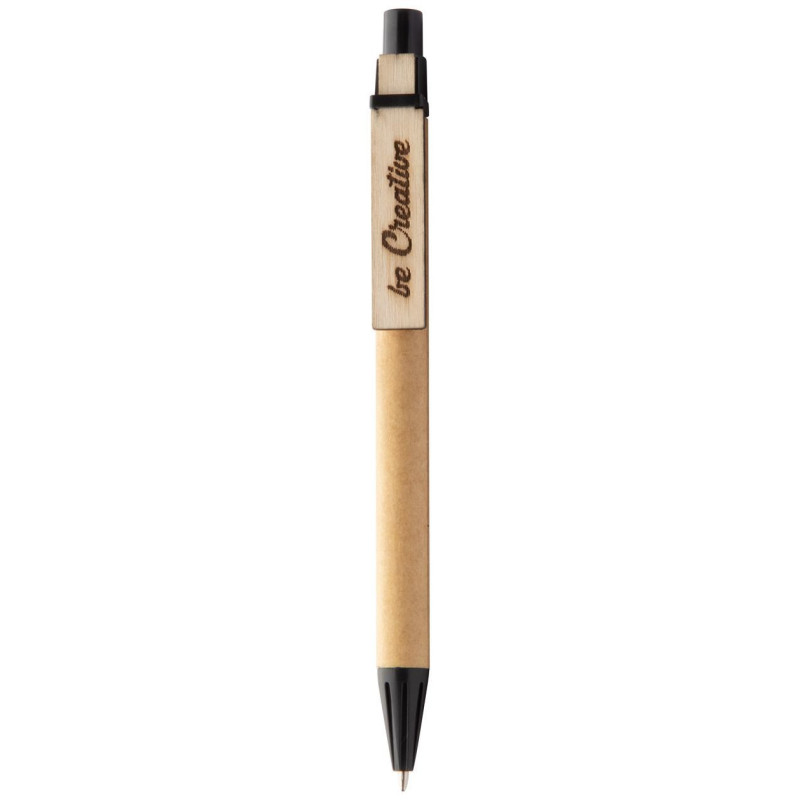 Újrahasznosított papírból készült golyóstoll megegyező színű kupakkal. Kék tollbetéttel szállítjuk.