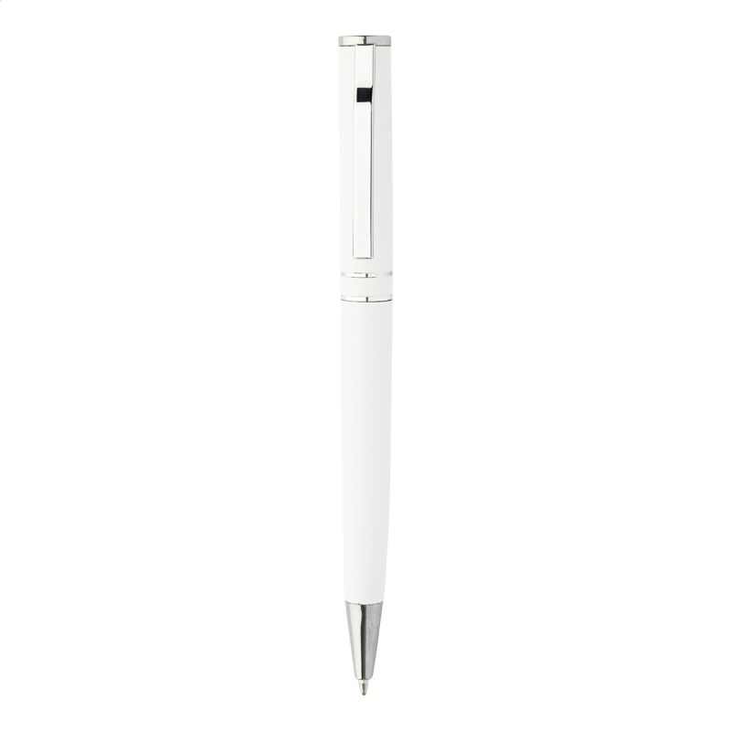Alumínium golyóstoll, fém klipsszel és króm nyomógombbal. Kék tollbetéttel szállítjuk.