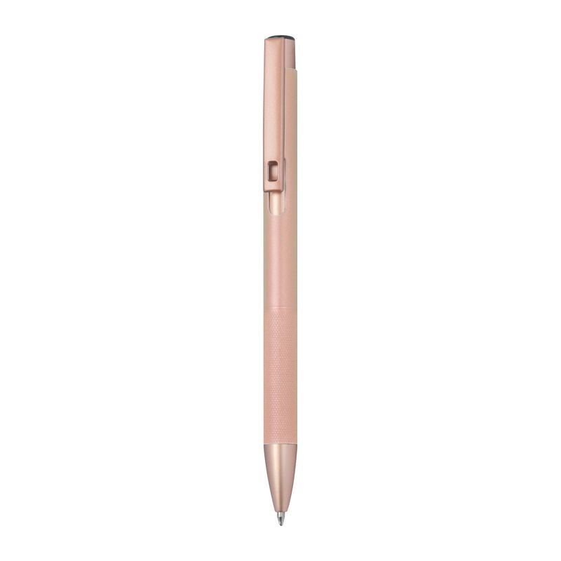 Újrahasznosított alumínium toll rózsaarany (rosegold) díszítéssel, kéken író nagy méretű betéttel és gyémántmintás markolattal.
