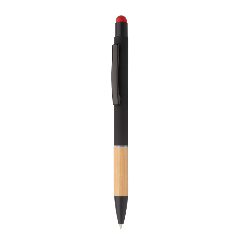 Alumínium, érintőképernyős golyóstoll bambusz markolattal és gumírozott felülettel.