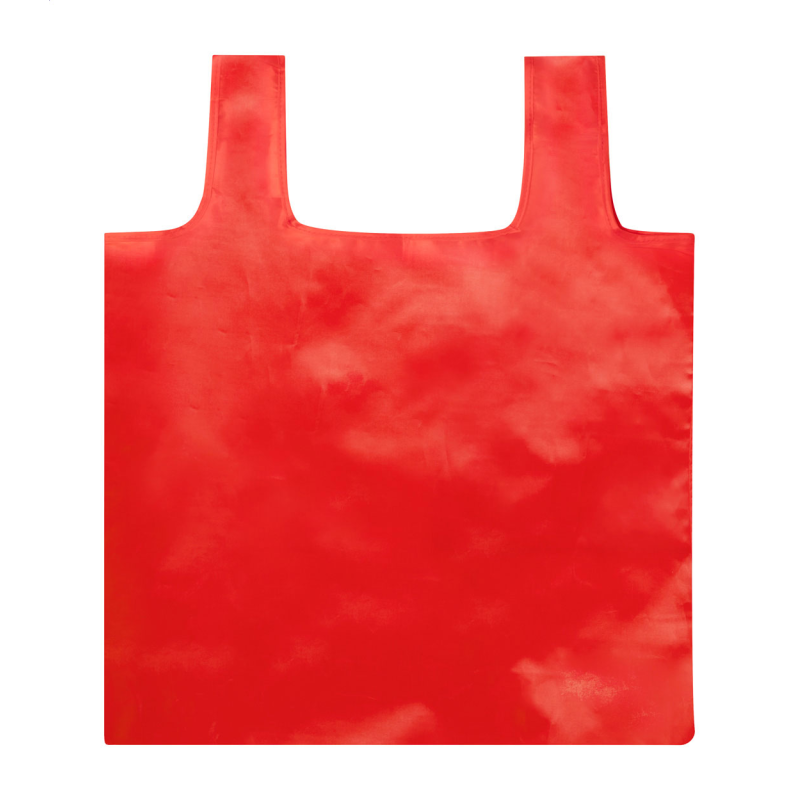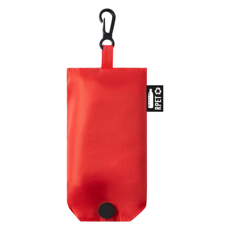 Egyedi gyártású, összehajthat bevásárlótáska 190T RPET poliészterből. Teljes felületén szublimációs nyomtatással ellátva és megkülönböztető RPET címkével.