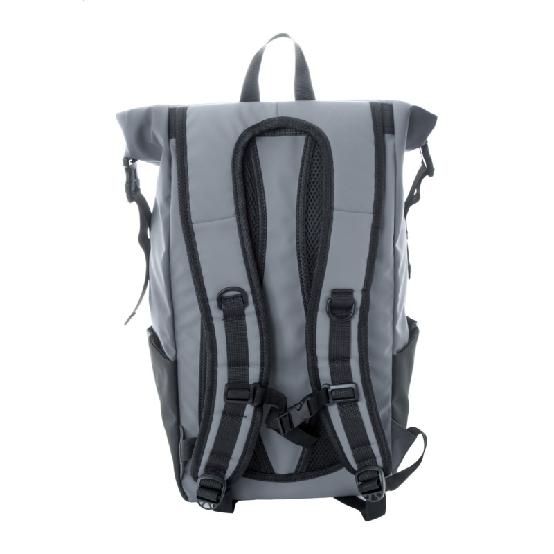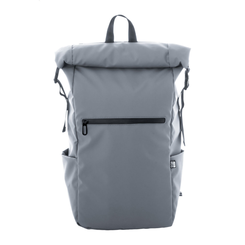 Vízálló RPET rolltop hátizsák csatos és tépőzáras zárral, párnázott laptop (16") és tablet (10") rekesszel, cipzáras elülső zsebbel, oldalsó zsebekkel, párnázott hát- és vállpántokkal.