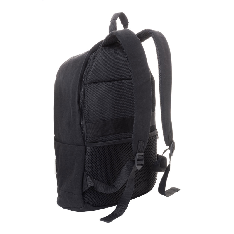 Újrahasznosított vászon hátizsák cipzáras fő rekesszel, párnázott laptop rekesszel (15"), cipzáras első zsebbel, oldalzsebekkel, bőröndpánttal, párnázott hát- és vállpántokkal.