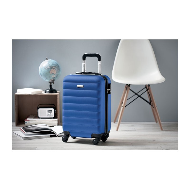20 inch-es kemény ABS kerekes bőrönd. Egy fő- és egy belső rekesszel. Biztonsági zárral. 4 forgó kerékkel.