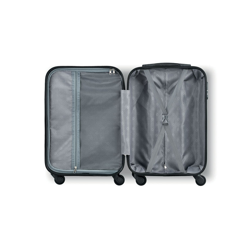 20 inch-es kemény ABS kerekes bőrönd. Egy fő- és egy belső rekesszel. Biztonsági zárral. 4 forgó kerékkel.