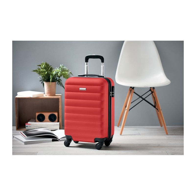 20 inch-es kemény ABS kerekes bőrönd. Egy fő- és egy belső rekesszel. Biztonsági zárral. 4 forgó kerékkel.