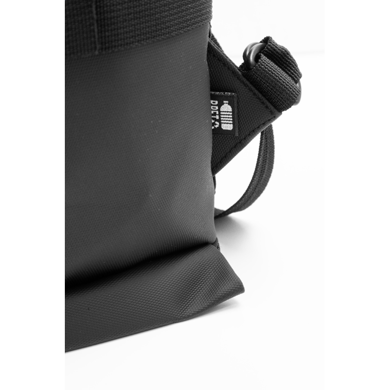Vízálló RPET oldaltáska cipzáras zsebekkel, csatos zárral és párnázott hátrésszel.
