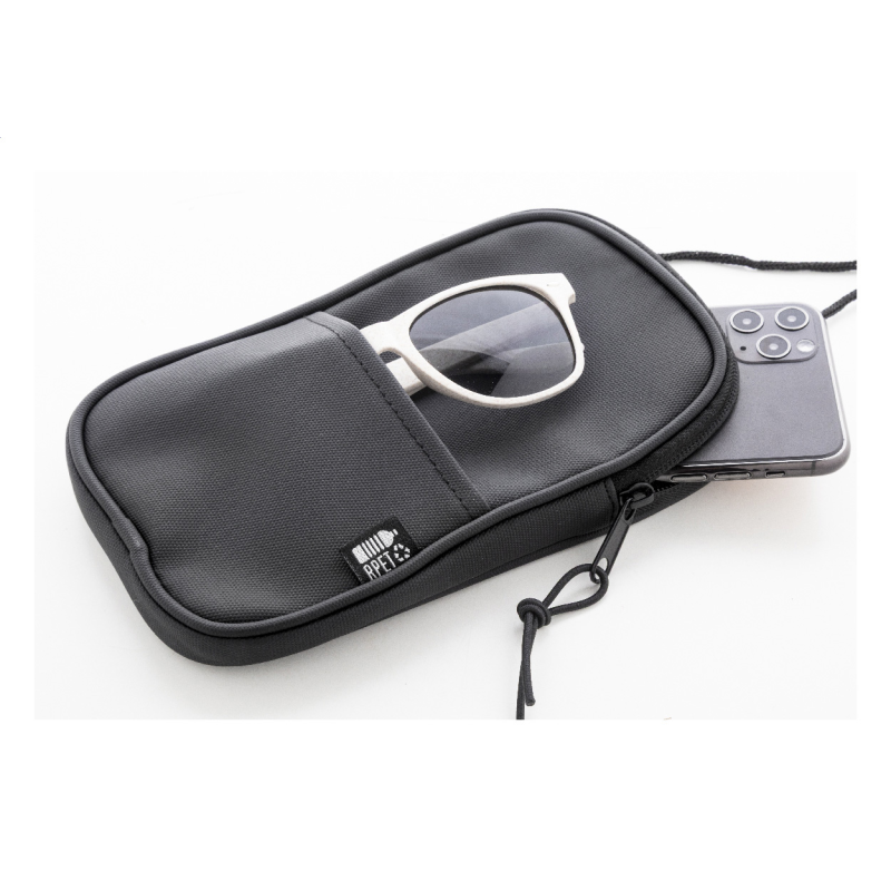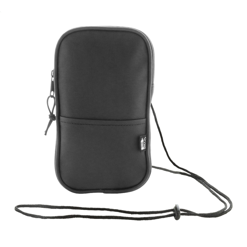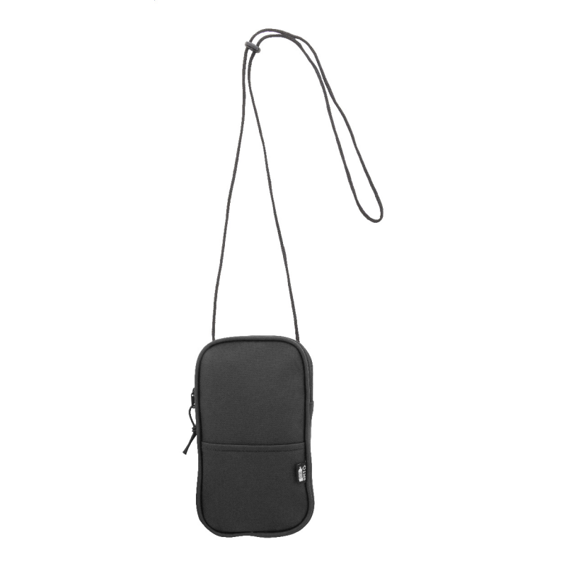 Vízálló RPET anyagból készült mobiltartós oldaltáska cipzáras fő rekesszel, elülső zsebbel és állítható nyakpánttal.