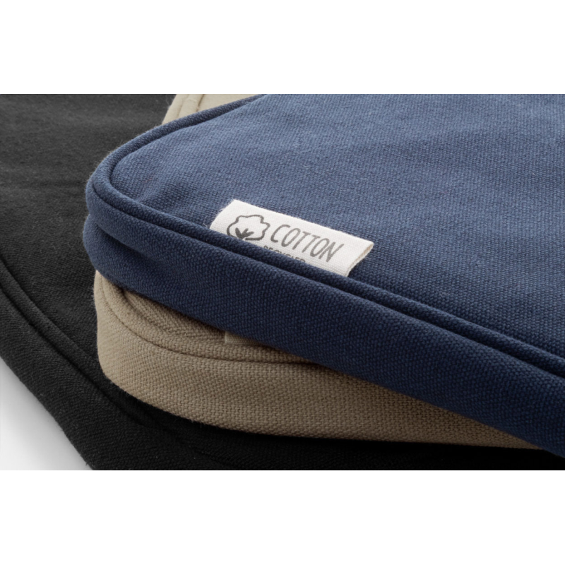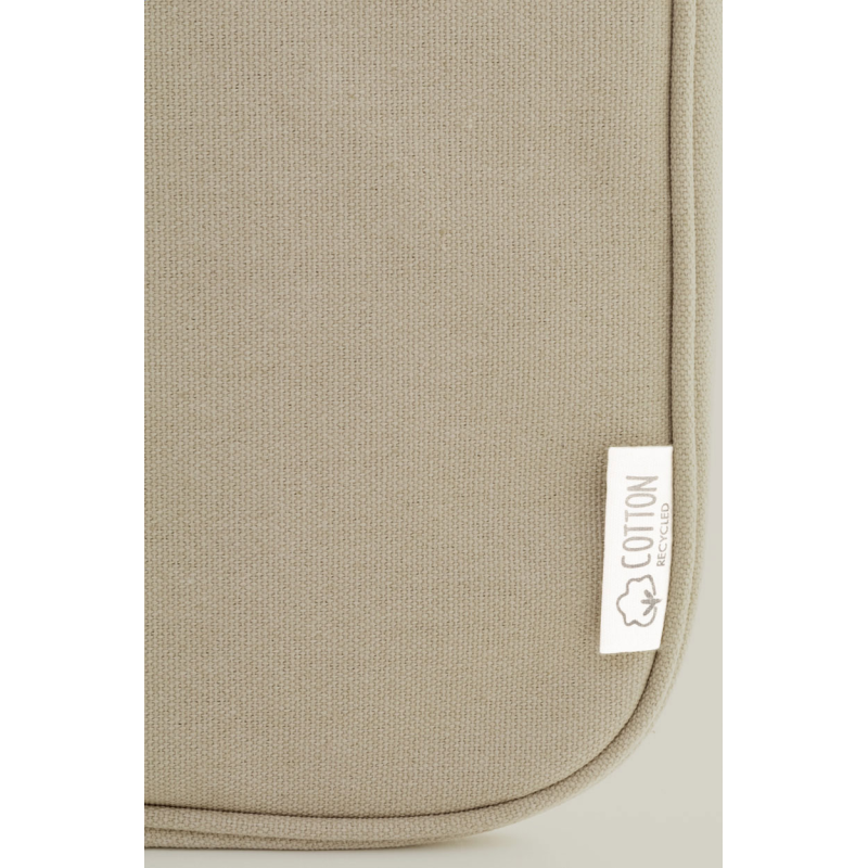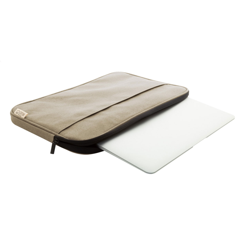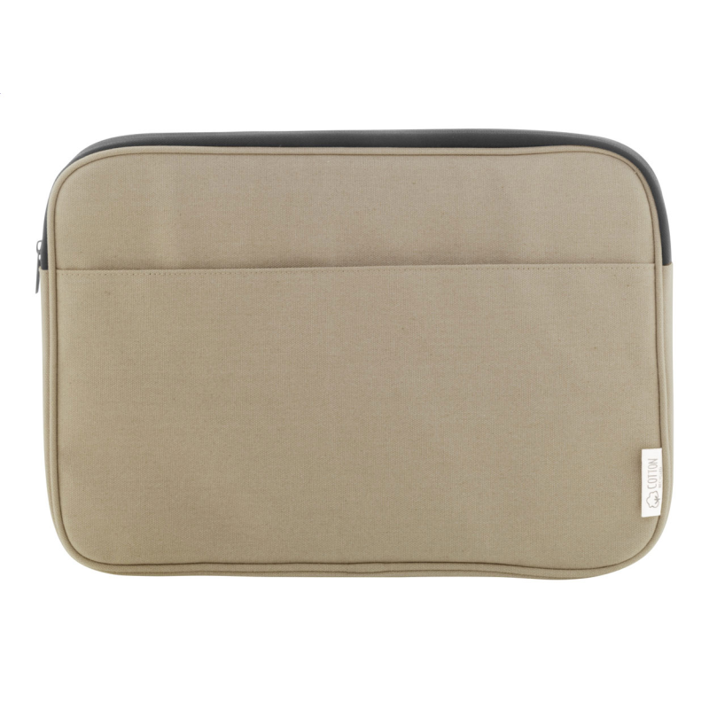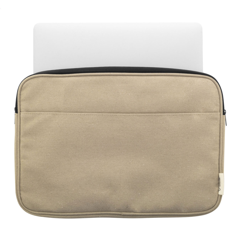 Teljesen párnázott újrahasznosított vászon laptoptáska cipzáras rekesszel és elülső zsebbel.