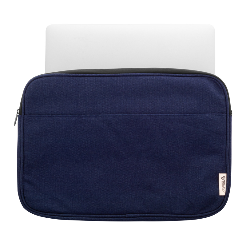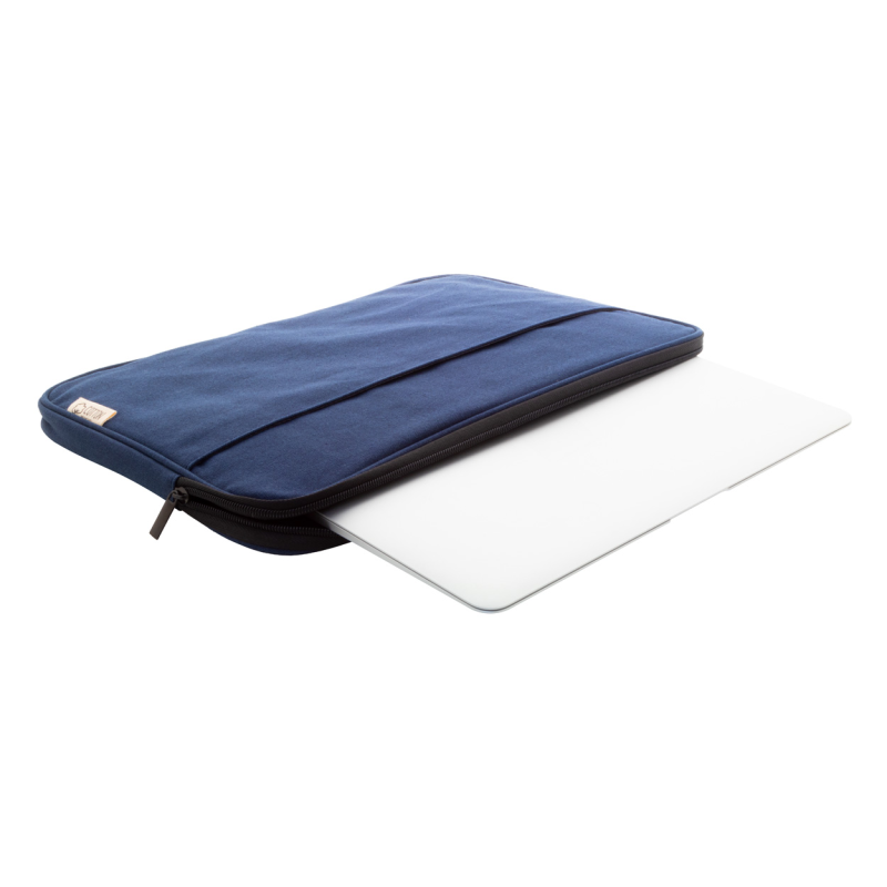 Teljesen párnázott újrahasznosított vászon laptoptáska cipzáras rekesszel és elülső zsebbel.
