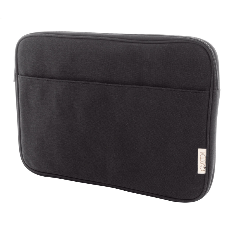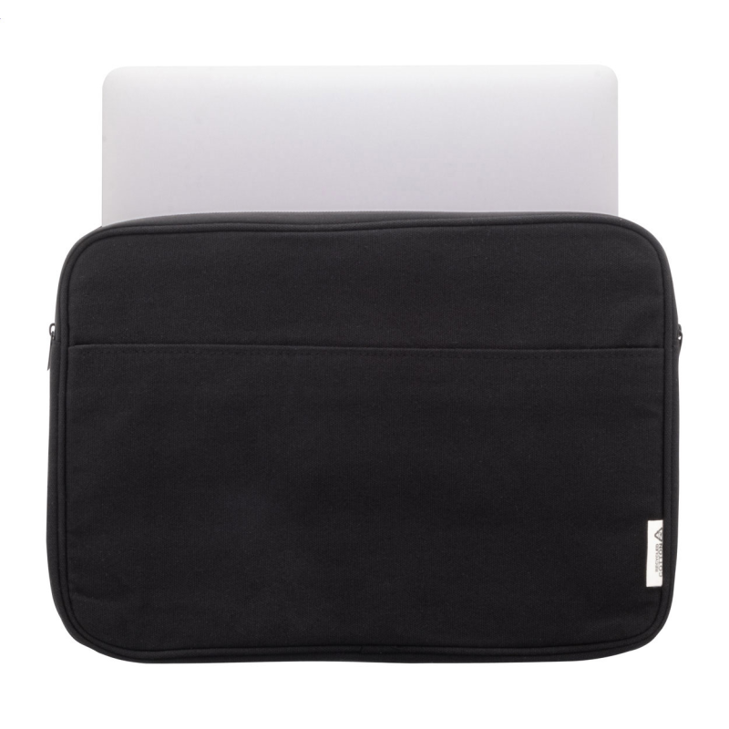 Teljesen párnázott újrahasznosított vászon laptoptáska cipzáras rekesszel és elülső zsebbel.