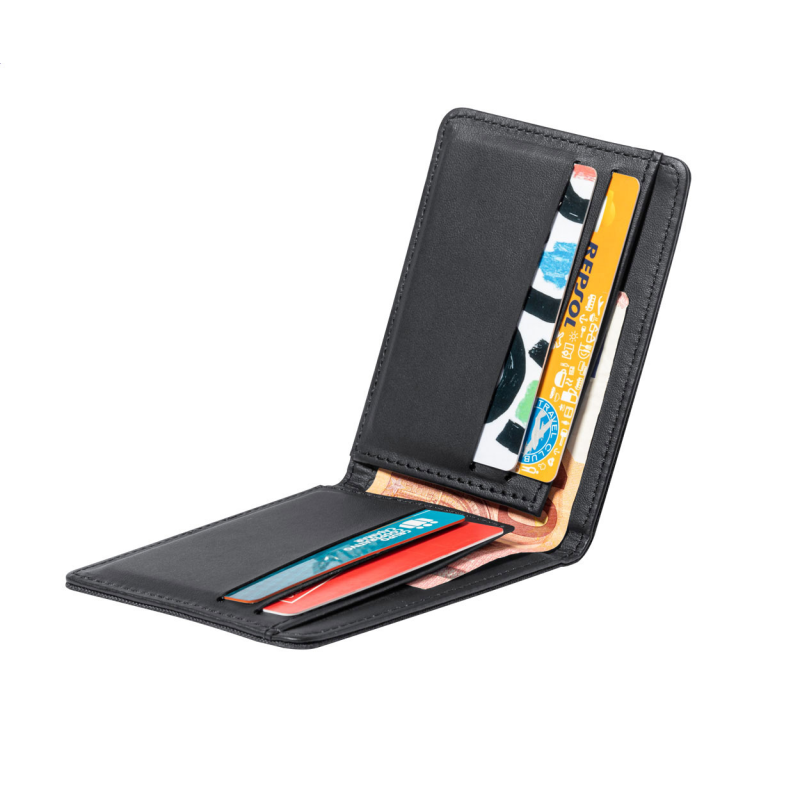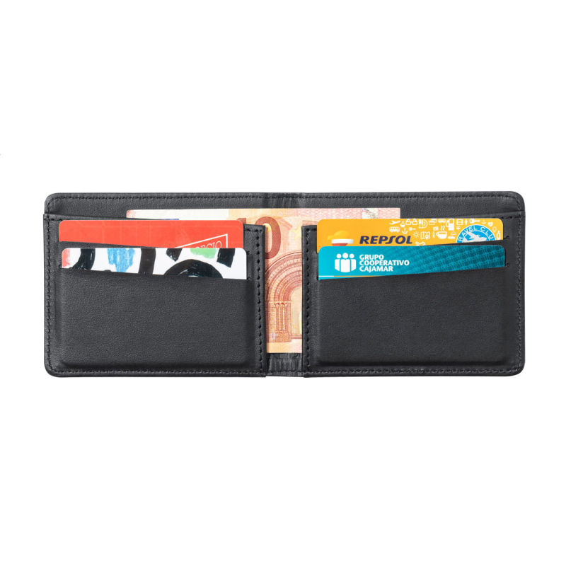 RFID védelemmel ellátott, RPET poliészter pénztárca 6 bankkártyatartó rekesszel.