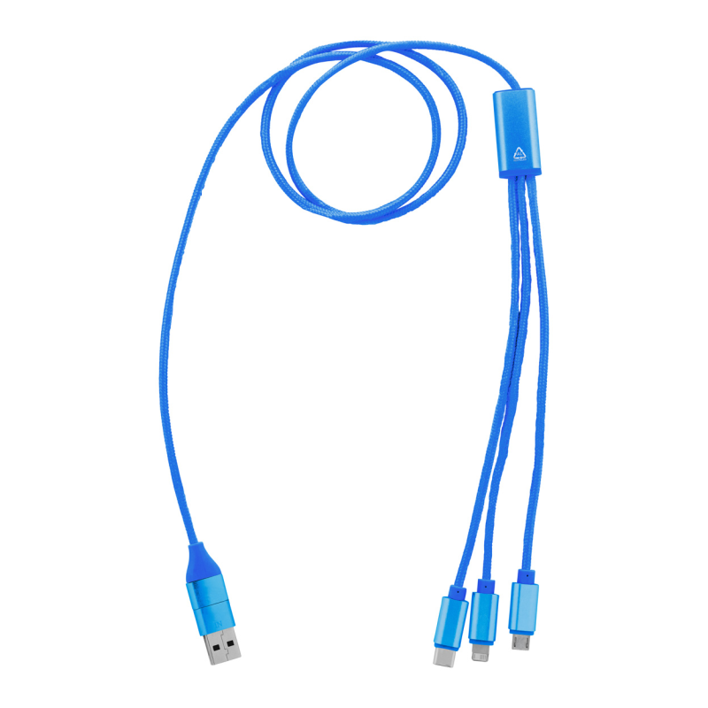 Újrahasznosított alumínium és RPET USB töltőkábel micro USB, USB-C-vel és lightning csatlakozókkal.