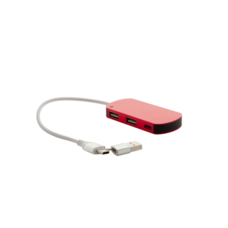 Újrahasznosított alumínium és újrahasznosított ABS műanyag USB hub 2 USB és 1 USB-C porttal, USB 2.0. USB és USB-C csatlakozású kábellel szállítjuk.
