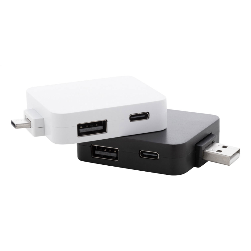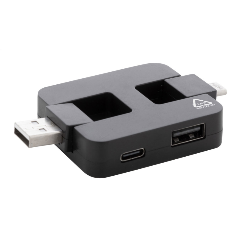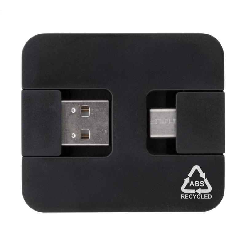 Újrahasznosított ABS műanyag USB hub 2 USB és 2 USB-C porttal.