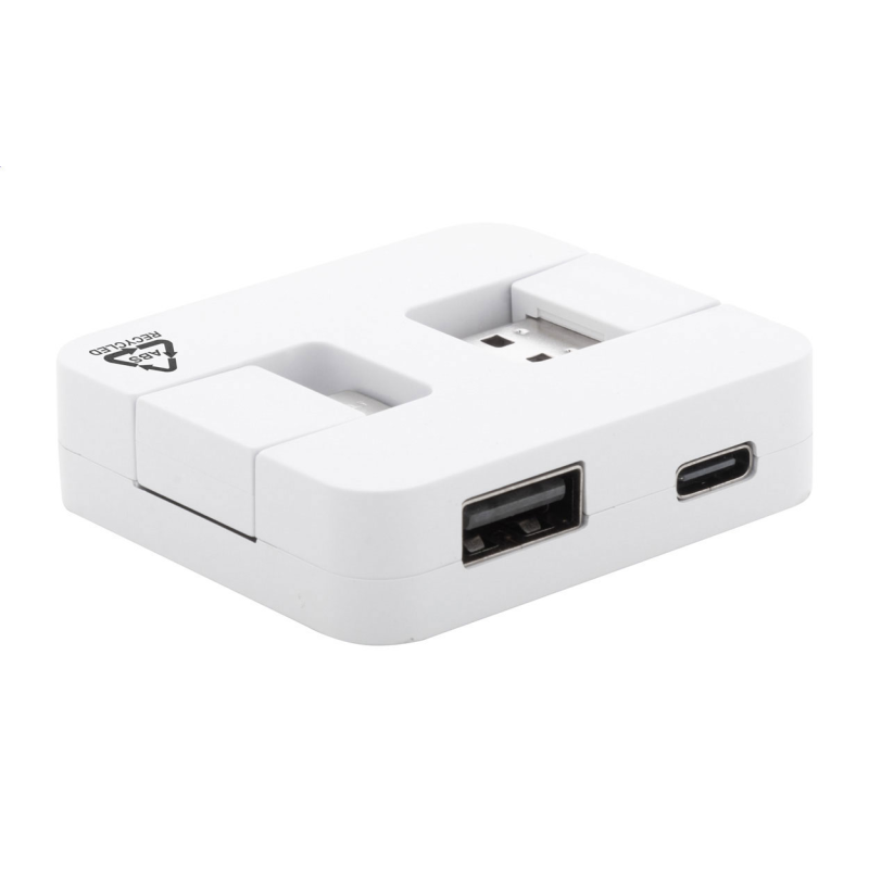 Újrahasznosított ABS műanyag USB hub 2 USB és 2 USB-C porttal.