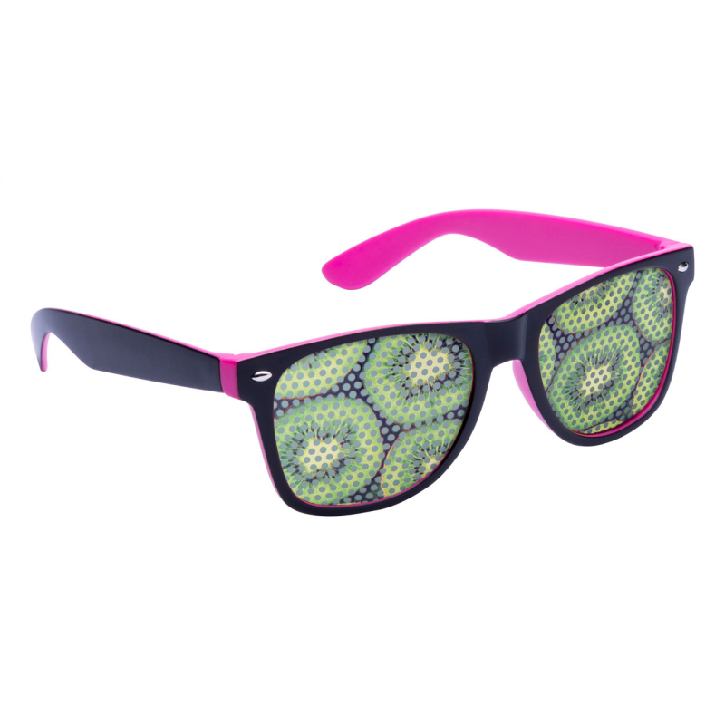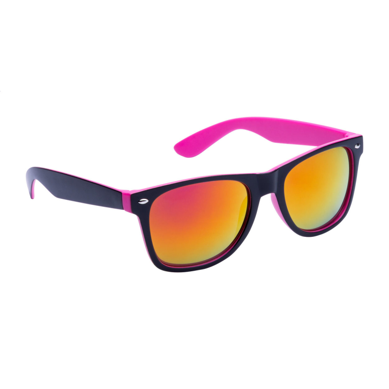 Műanyag napszemüveg kétszínű kerettel, foncsorozott lencsékkel és UV 400 fényvédelemmel ellátott.