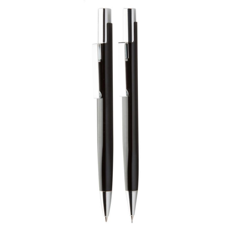 Alumínium toll szett, golyóstollal és töltőceruzával fekete dobozban. Kék tollbetéttel és 0,7 mm-es töltőheggyel szállítjuk.