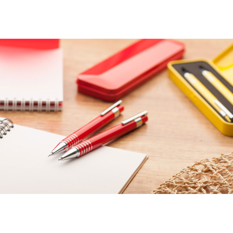 Alumínium toll szett, golyóstollal és töltőceruzával fekete dobozban. Kék tollbetéttel és 0,7 mm-es töltőheggyel szállítjuk.