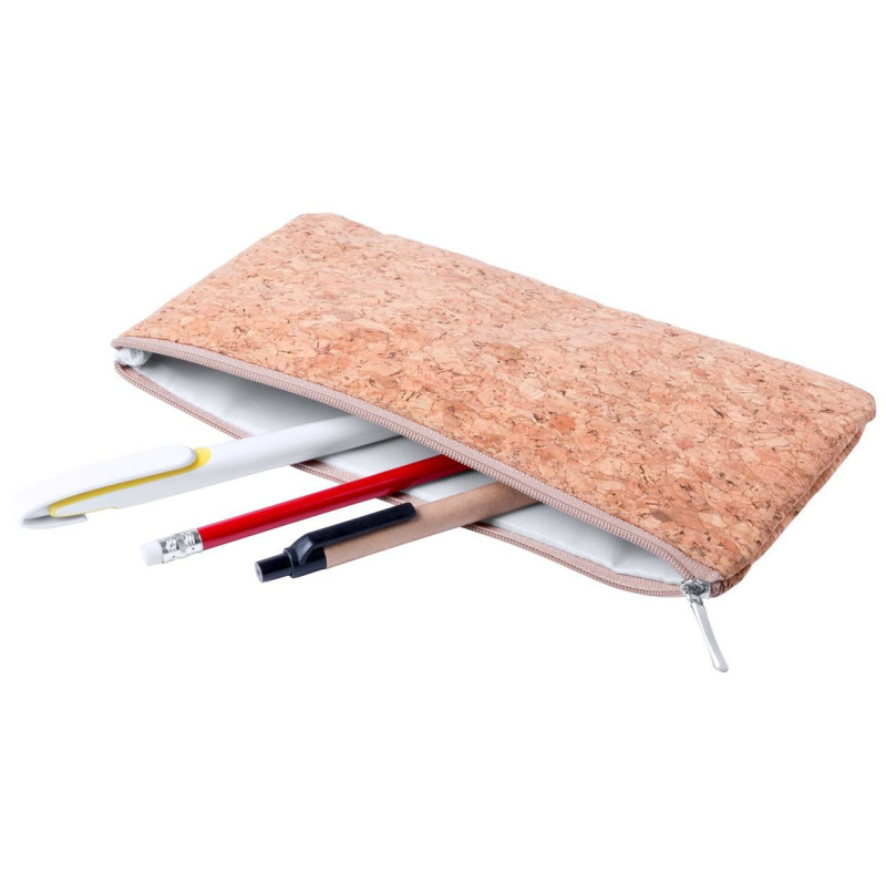 Egyediesíthető poliészter tolltartó cipzárral, hátulján természetes parafa anyaggal.