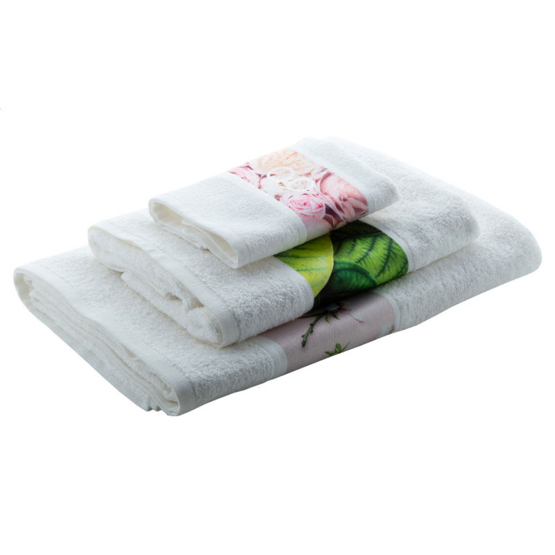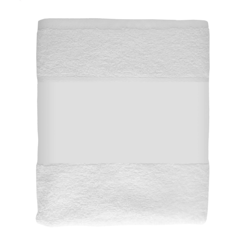 100% pamut, 380 g/m² törölköző poliészter bordűrrel, szublimációs emblémázáshoz.