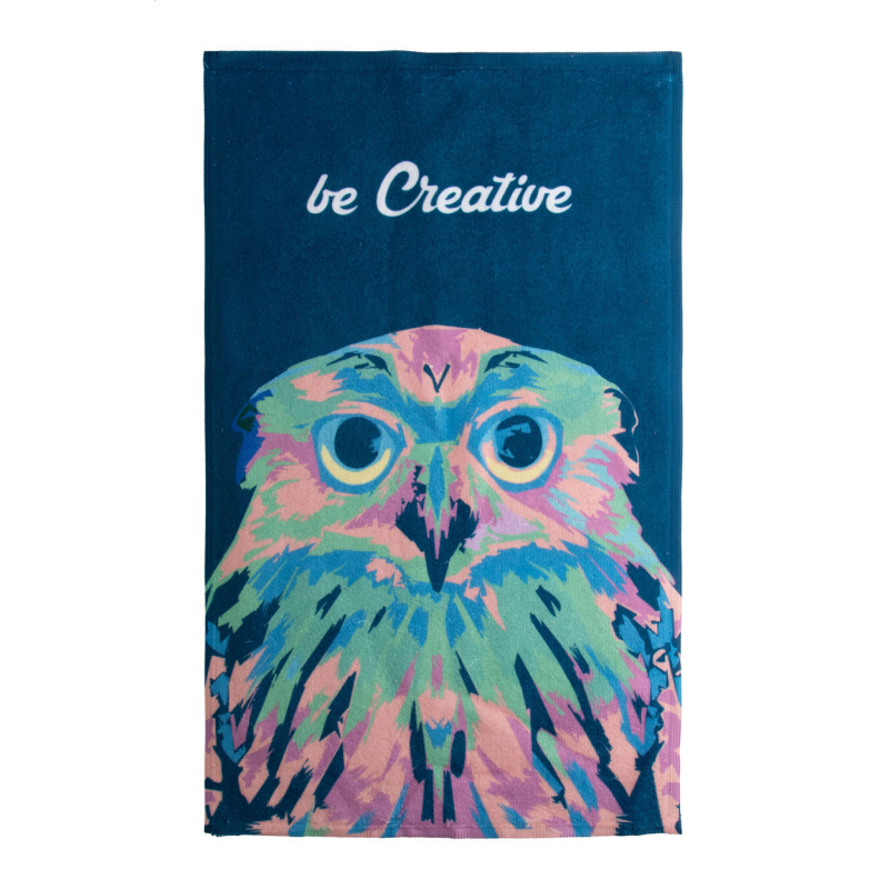 Kétrétegű törölköző egy oldalon szublimációs technológiával emblémázva.