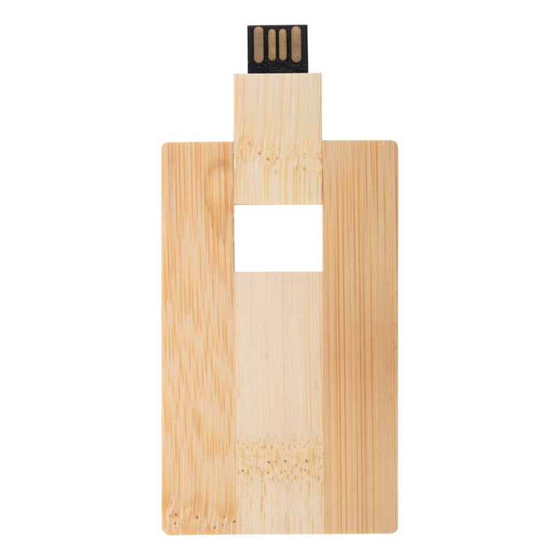 Bankkártya alakú, bambusz USB memória. Memória mérete: 4/8/16/32 GB. USB 2.0.