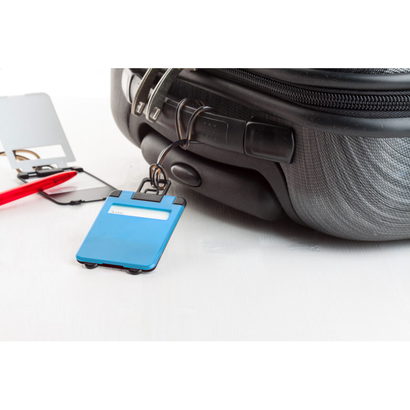 Műanyag, szétnyitható bőröndcímke papírbetéttel.