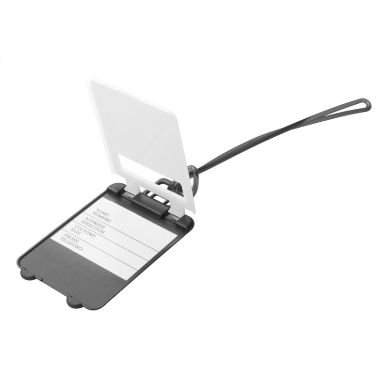 Műanyag, szétnyitható bőröndcímke papírbetéttel.