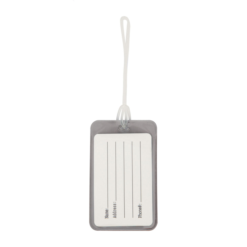 Műanyag, szétnyitható bőröndcímke papírbetéttel.