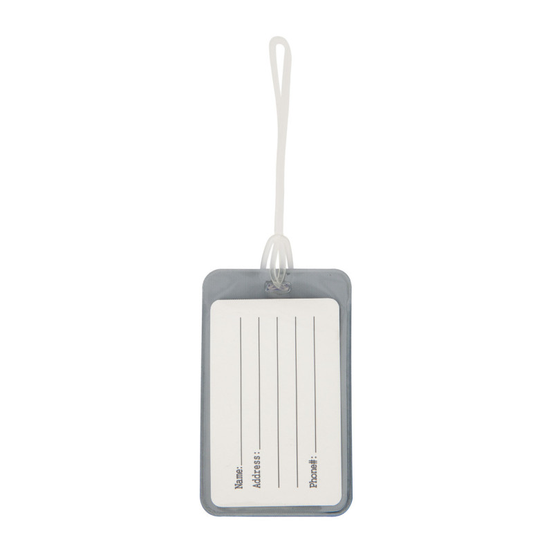 PVC bőröndcímke, hátoldalába csúsztatható adatkártyával.