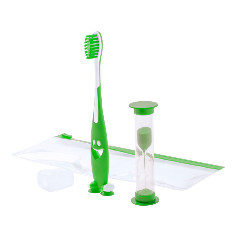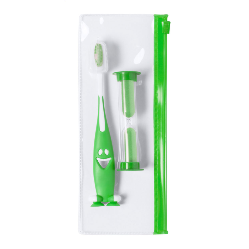 Fogkefe szett gyerekeknek, műanyag fogkefével és homokórával. Cipzáras műanyag tartóban szállítjuk.