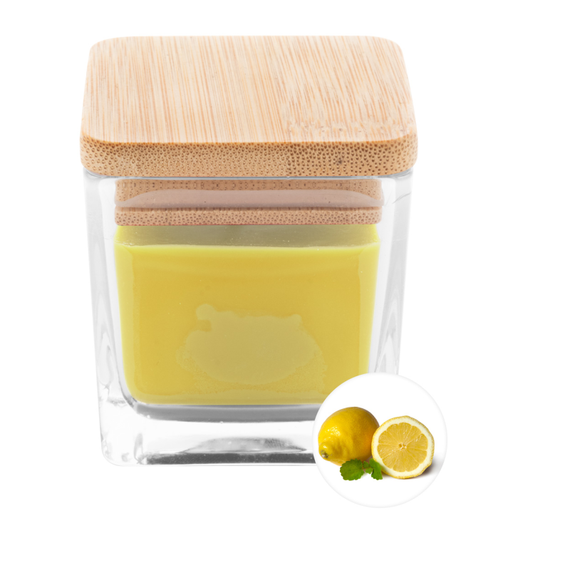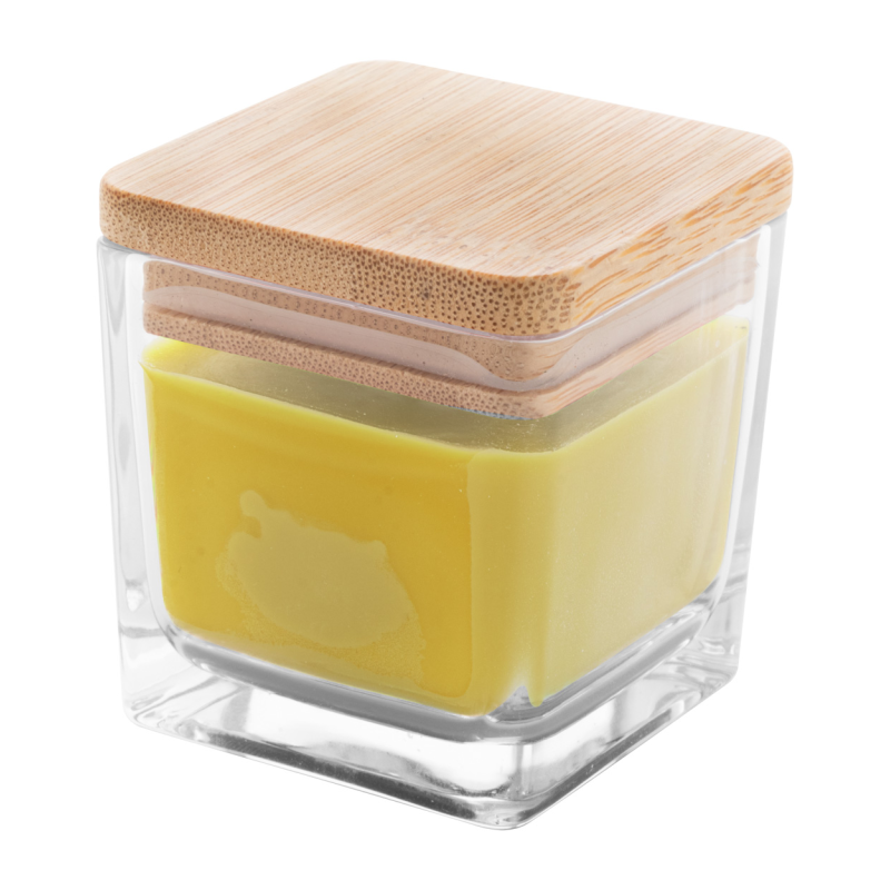 Növényi alapú illatgyertya bambusz fedelű üvegtartóban, 50 gramm viasszal.