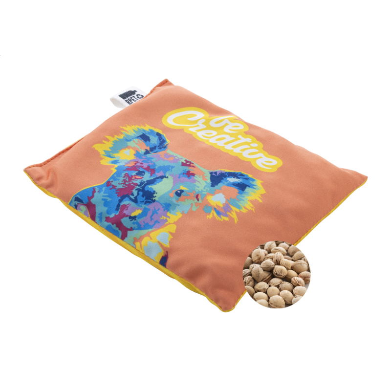Egyedi gyártású, RPET mikroszálas bevonatú, cseresznyemaggal töltött melegítőpárna.
